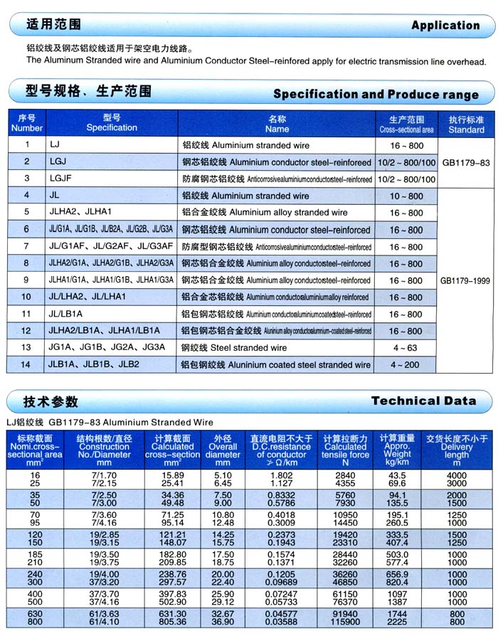 铝绞线及钢芯铝绞线