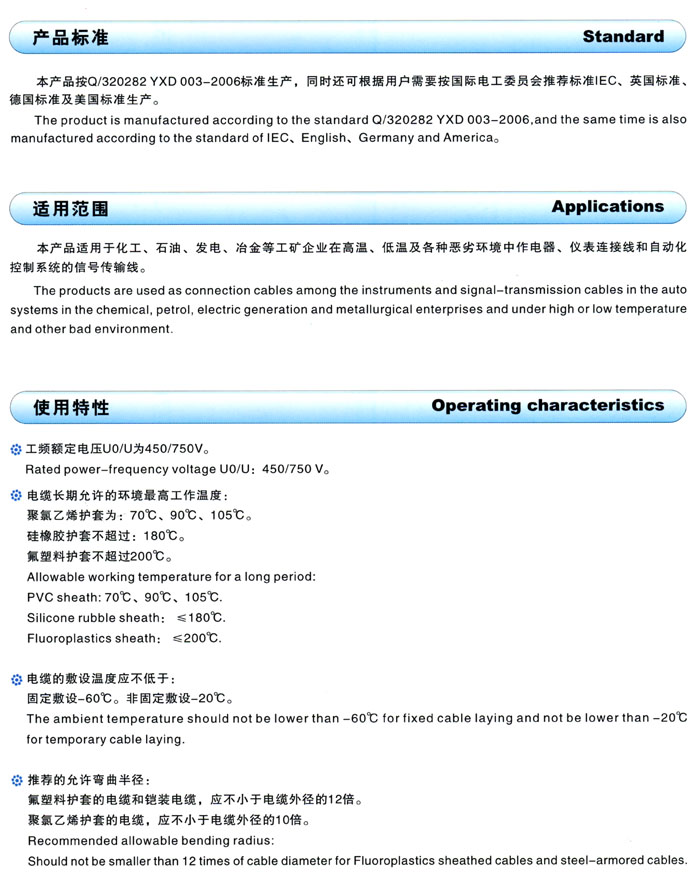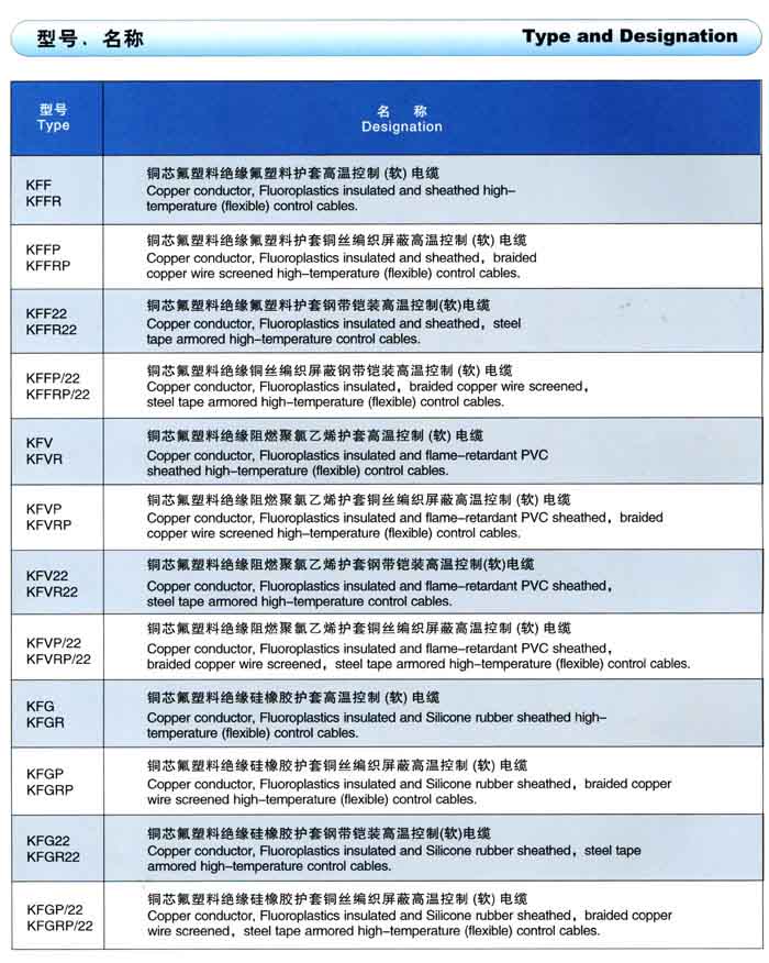 氟塑料绝缘耐高温控制电缆