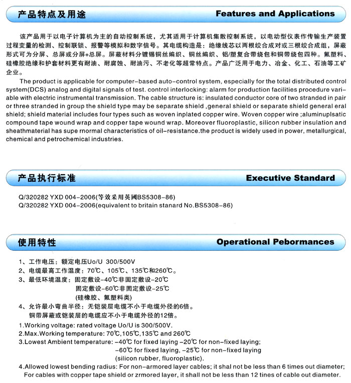 电子计算机(包括DCS系统)用多对屏蔽控制、信号电缆